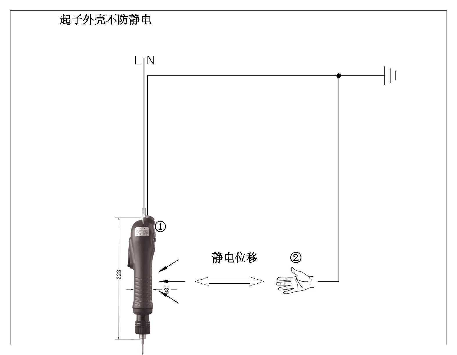 *综合以上资料,我们可以探讨出一个作业工具只要是有通过电而产生功率的仪器,为了作业的安全,必须加上一条接地线,好让仪器因摩擦产生的静电由接地线导回大地,但是这都是仪器内部静电的导回系统。若静电的产生是在工具的外壳上或是使用者磨擦所产生,这时若外壳采用的是防静电材料的外壳,再加上使用者加挂防静电器具(静电手环、静电衣…等)便可轻易将静电做静电泄漏或耗散, |