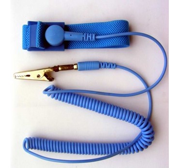 防静电手腕带分为有绳手腕带、无绳手腕带及智能防静电手腕带,按结构分为单回路手腕带及双回路手腕带,它用以泄放人体的静电。它由松紧带、活动按扣、弹簧软线。保护电阻及插头或夹头组成。松紧带的内层用防静电纱线编织,外层用普通纱线编织。