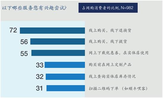 71%的中国数字消费者已经在使用O2O服务,其中97%的消费者表示他们在未来6个月内仍会继续使用O2O服务甚至增加使用频次。而在还没使用过O2O服务的消费者中,近三分之一的消费者表示他们愿意在未来6个月内进行尝试。